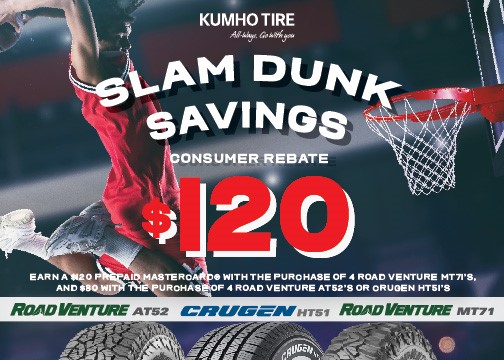 Kumho Announces Slam Dunk Savings Light Truck Consumer Rebate 09/01/2023